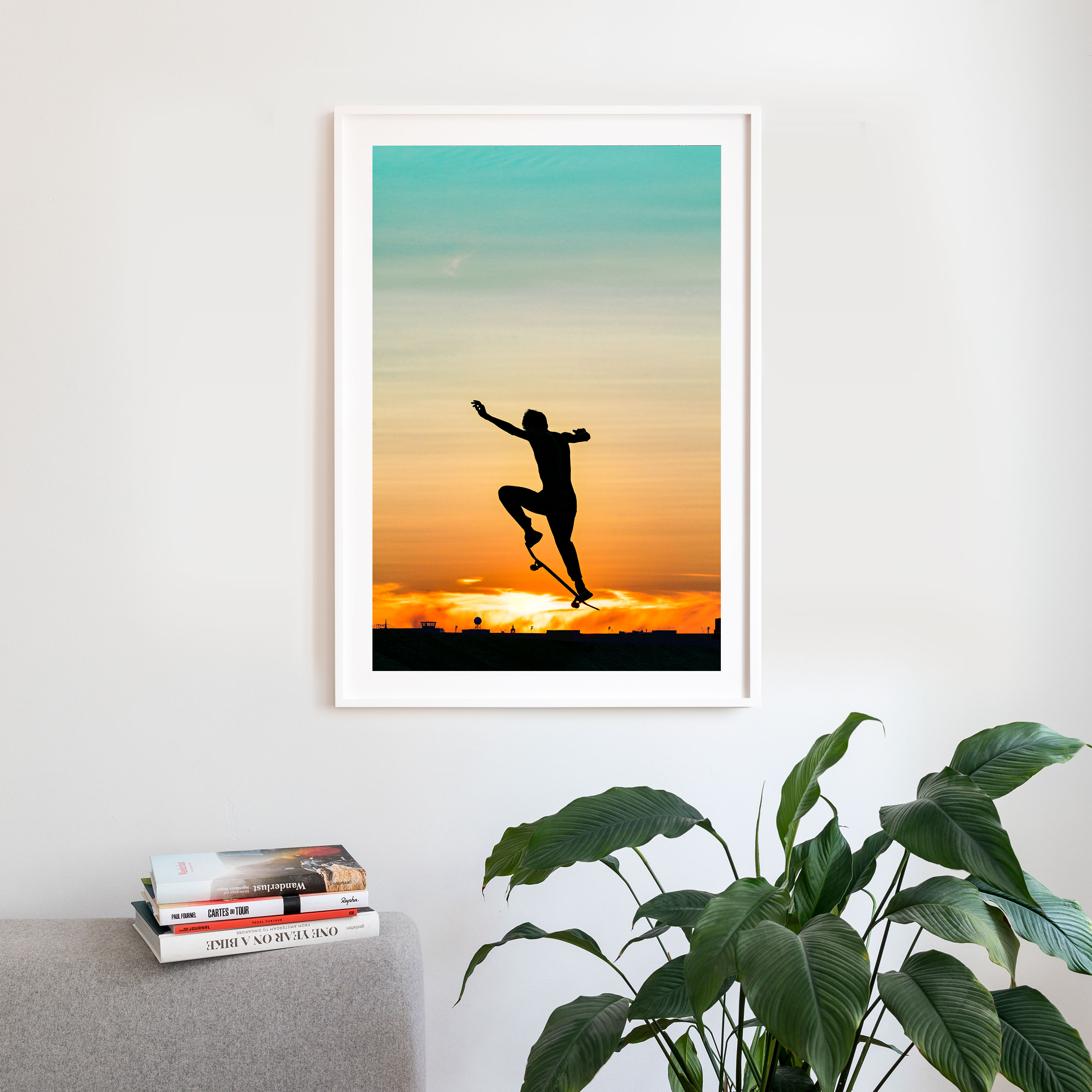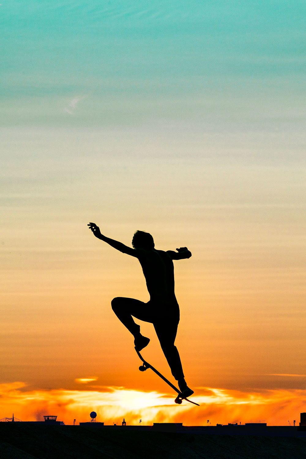 Germany, Europe, Deutschland, Tempelhofer Feld, Tempelhofer Park, Berlin. skater, sunset, Sonnenuntergang, silhouette, Gegenlicht, backlight,skateboarding, paper cut