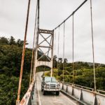 An off-road vehicle crosses the Karangarua Bridge on the west coast of New Zealand’s South Island.