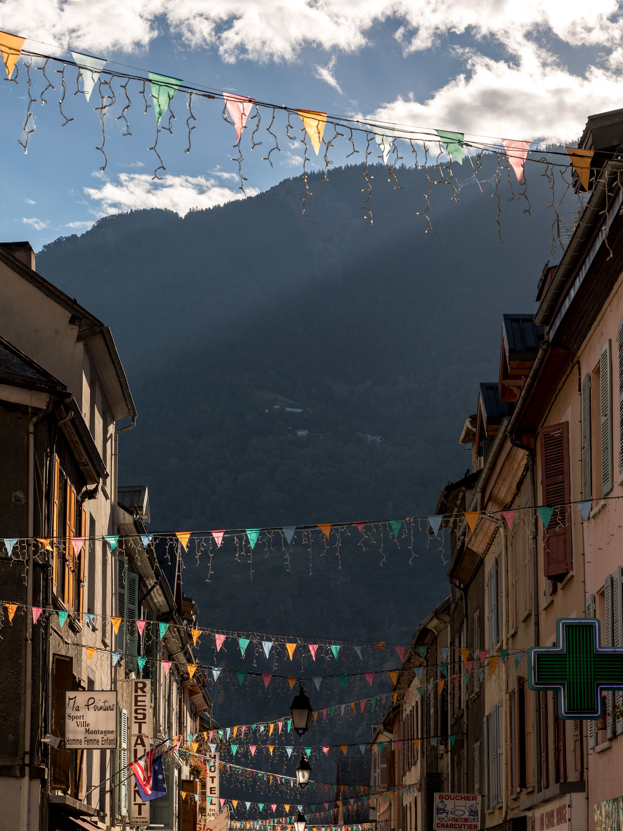 Evening atmosphere in Bourg d’Oisans, our destination.