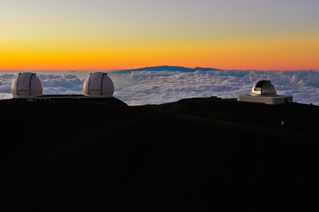 The air is thin and cold at Hawaii’s highest point, located at 4,205 meters (13,796 ft). But the scenery and sunset high above the clouds are sensational. From Mauna Kea you can see Hawaii’s second-highest mountain, Mauna Loa, also piercing the cloud cover.