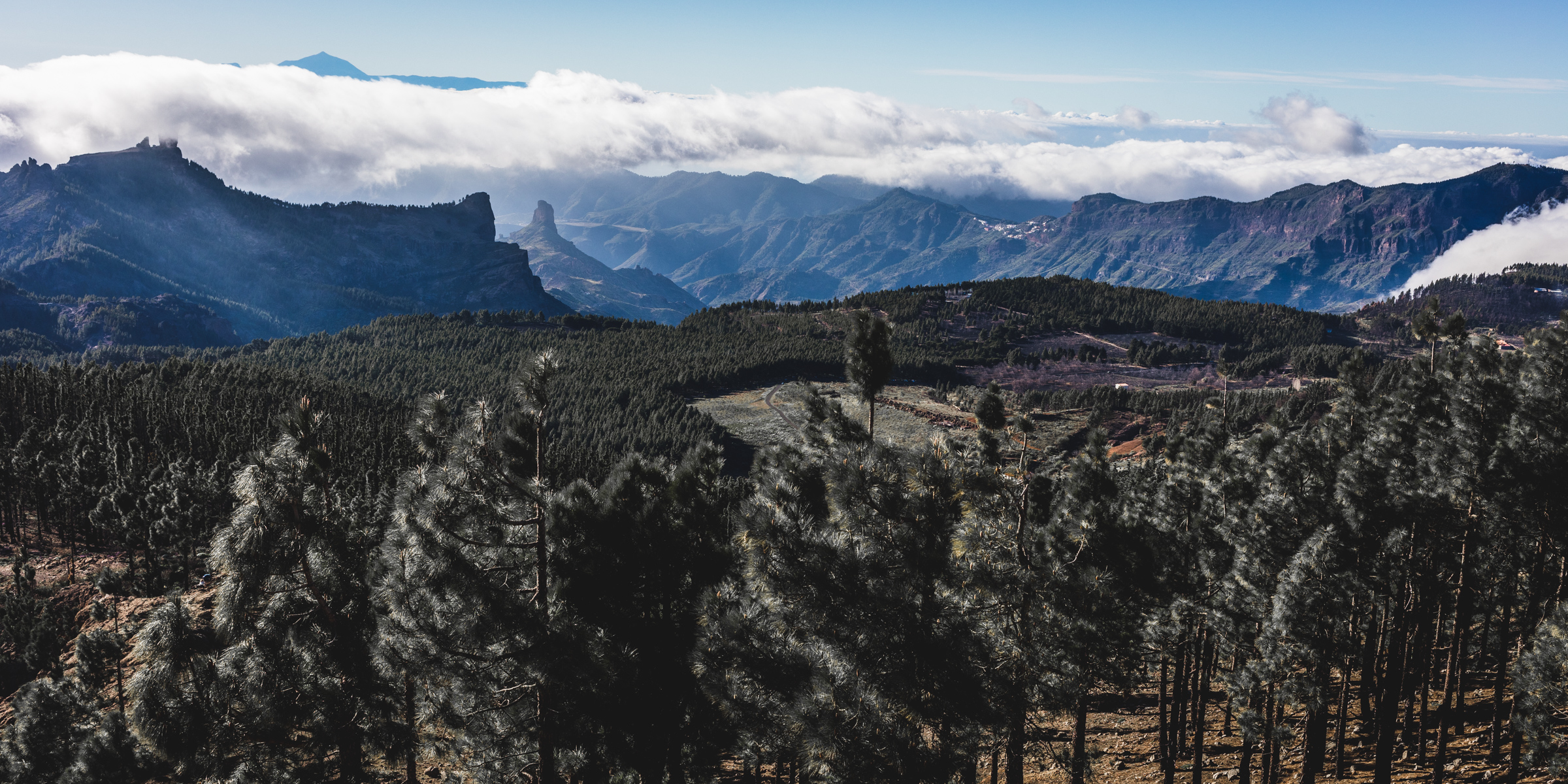 Perfekter Panoramablick vom Pico de las Nieves bis nach Teneriffa. Man sieht sogar den Pico del Teide, wie er in der Ferne die Wolkendecke überragt