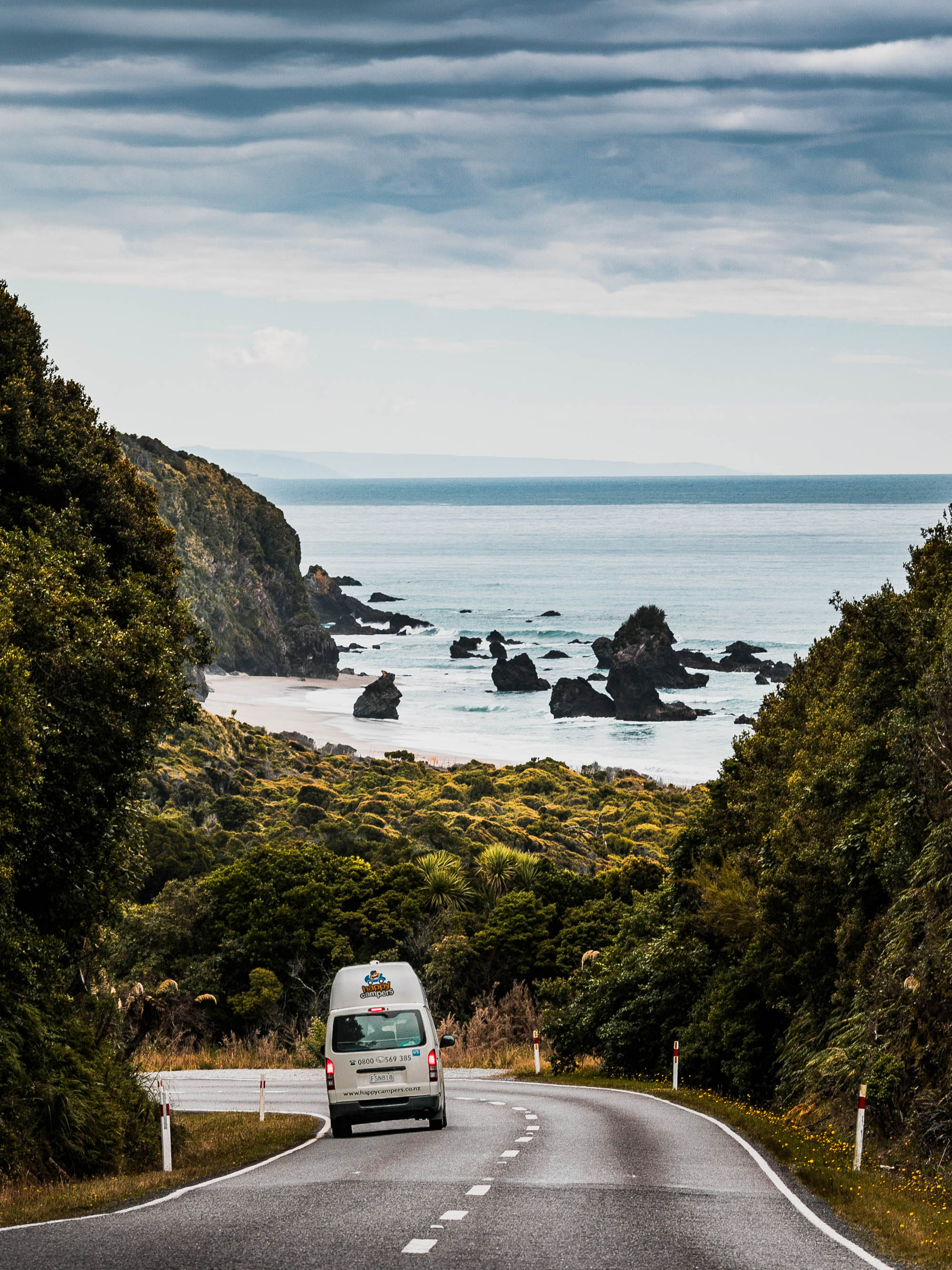 Haast Highway offers vistas of the Tasman Sea