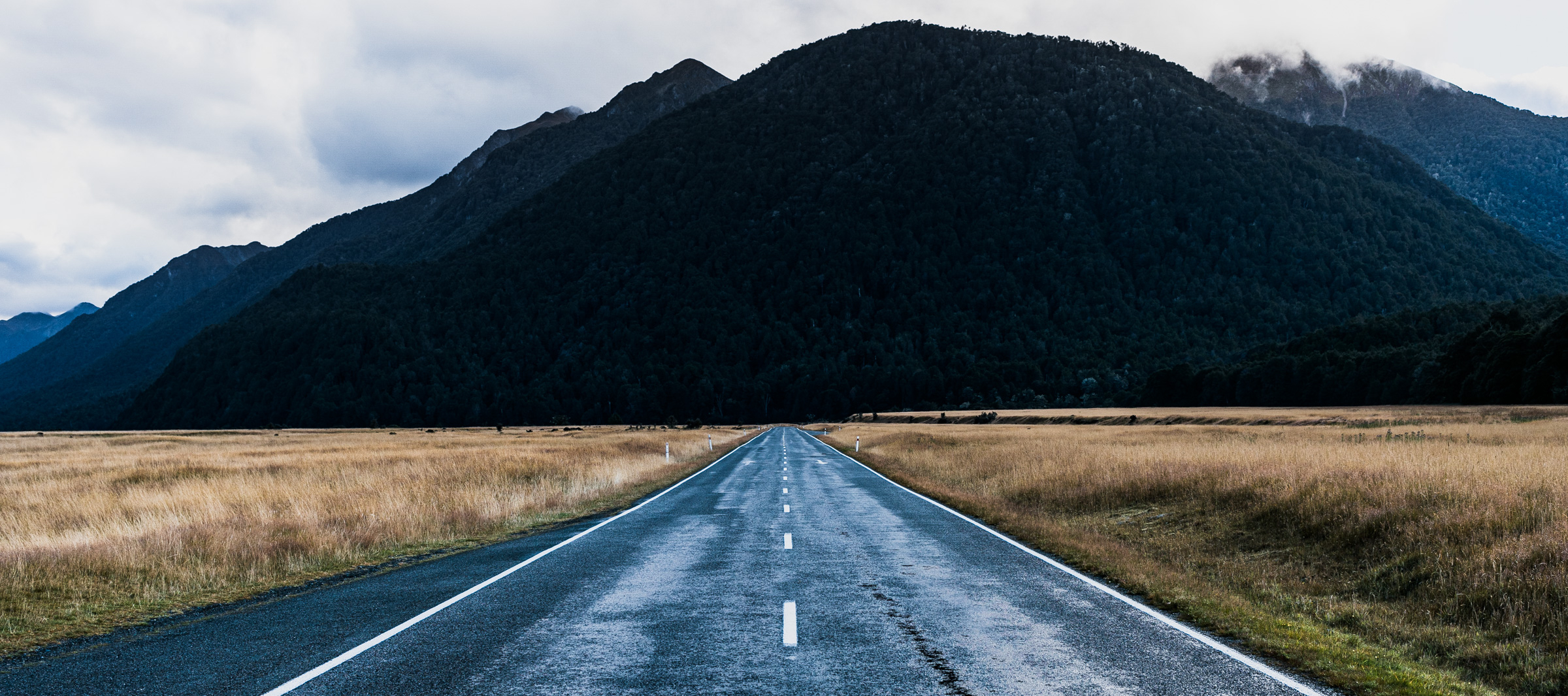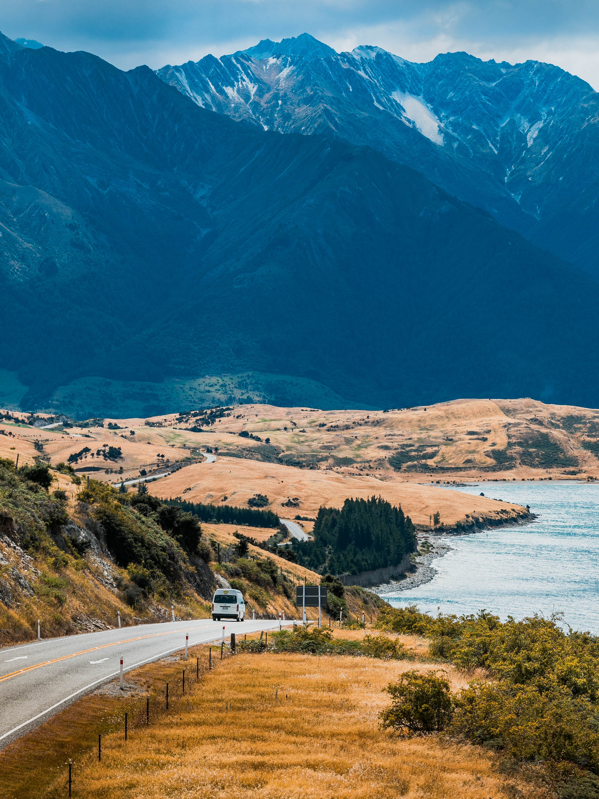 Milford Road stretches through wild mountain landscapes all the way down to the sea
