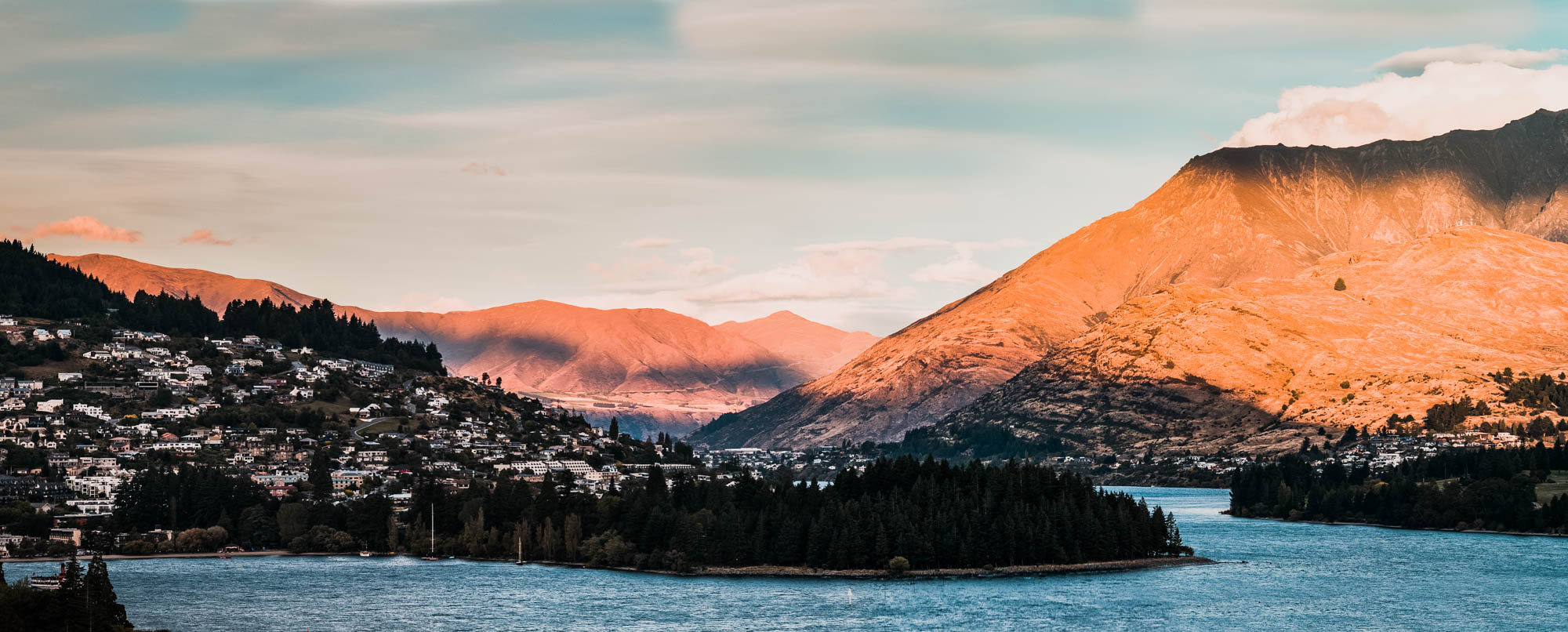 Queenstown and “The Remarkables” mountain range in the evening light