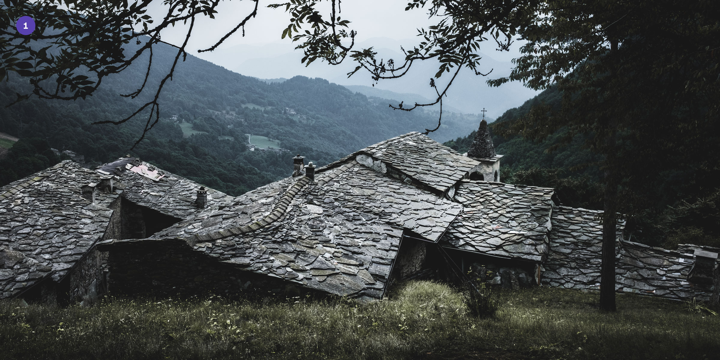 The abandoned village Borgata Chesta (1 & 3) and San Damiano Macra (2) in the Valle Maira